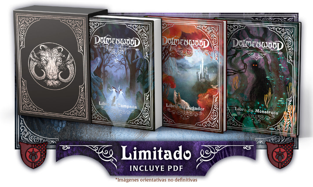 Libro del Jugador edición limitada, Libro de Campaña edición limitada y Libro de Monstruos edición limitada en formato físico y digital. Estuche de cartón rígido para guardar los tres libros de edición limitada. Todas las metas desbloqueadas en formato impreso y digital. Tu nombre como mecenas del Nivel Limitado.