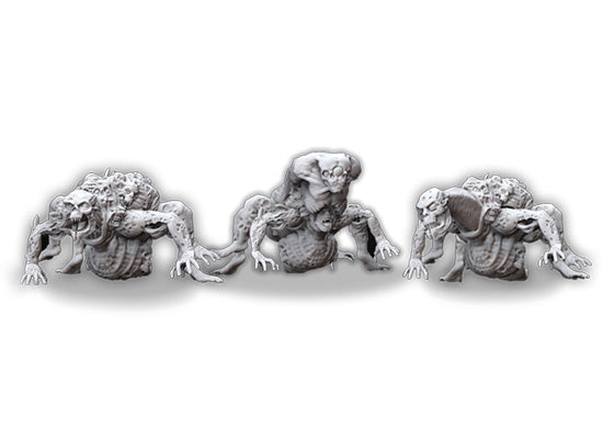 Tres miniaturas en metal de criaturas de los Mitos de Achtung! Cthulhu a escala 28mm: Die Draugar son una creación de Nachtwölfe que responde a la definición de arma biológica disparada por la artillería para causar la reanimación incontrolada del tejido muerto.