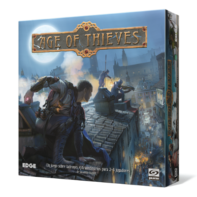 Age of Thieves es un juego de tablero de estrategia y aventuras con una ambientación clockpunk para 2–4 jugadores. Cada jugador se convierte en un ladrón maestro que está a punto de cometer el robo más audaz de su vida. Durante la partida, los jugadores exploran la ciudad y se preparan para robar la Joya de los Emperadores en el Palacio. Cuando esto ocurra, se dará la alarma, ¡y el ritmo del juego aumentará mientras los ladrones se apresuran por salir de Hadria antes de que se cierre la última puerta!