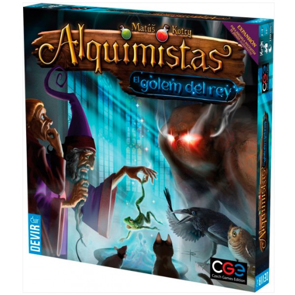 Idioma: Español Jugadores: 2-4 Duración: 90 min. ¿Qué estarán haciendo mis colegas? Llevan semanas encerrados en sus laboratorios y sólo salen a hurtadillas para visitar la biblioteca de palacio. ¿Será posible que estén trabajando también en el proyecto del rey? ¡Menudos botarates! ¡Pero si las fórmulas que están estudiando en la Enciclopedia Real las escribí yo mismo! ¡Sólo yo conozco la verdadera naturaleza de la raíz de mandrágora, y sólo yo lograré insuflarle vida al golem del rey! El golem del rey incluye reglas y componentes para 4 nuevos módulos que pueden combinarse de distintas maneras: Financiación para emprendedores te permitirá empezar cada partida de forma distinta. Días ajetreados hace que cada ronda empiece con nuevas opciones. La Enciclopedia Real es otra localización en la que podrás publicar tus estudios. Y El proyecto del golem ofrece un nuevo reto deductivo que te permitirá infundirle vida a una masa informe de barro. El golem del rey es una expansión para Alquimistas. Se necesita el juego básico para jugar. Página del juego en BGG