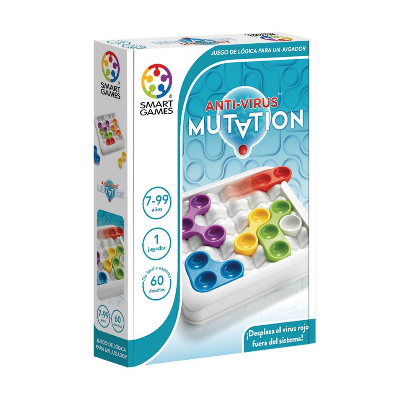 Antivirus Mutation desafía a los jugadores a deslizar todas las piezas de colores por el tablero para dejar un camino libre que permita sacar el virus rojo a través de la apertura. Con 60 desafíos y una caja para guardarlo, es un perfecto juego de viaje. Antivirus Mutation es la nueva generación del original Antivirus ofreciendo una experiencia de juego totalmente nueva.