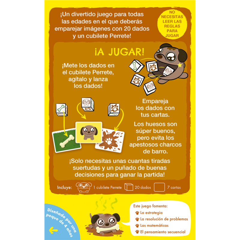 ¡Un divertido juego para todas las edades en el que deberás emparejar imágenes con 20 dados y un cubilete Perrete!