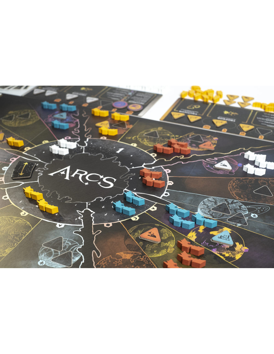 Arcs es un agudo juego de estrategia de ciencia ficción para 2-4 jugadores, ambientado en un universo oscuro pero disparatado. Los jugadores representan a los funcionarios de un Imperio distante, decadente y negligente, que ahora son libres para competir por el dominio, ya sea mediante la batalla, la recolección de recursos escasos o la intriga diplomática. Prepárate para giros dramáticos mientras te lanzas a esta lucha galáctica.