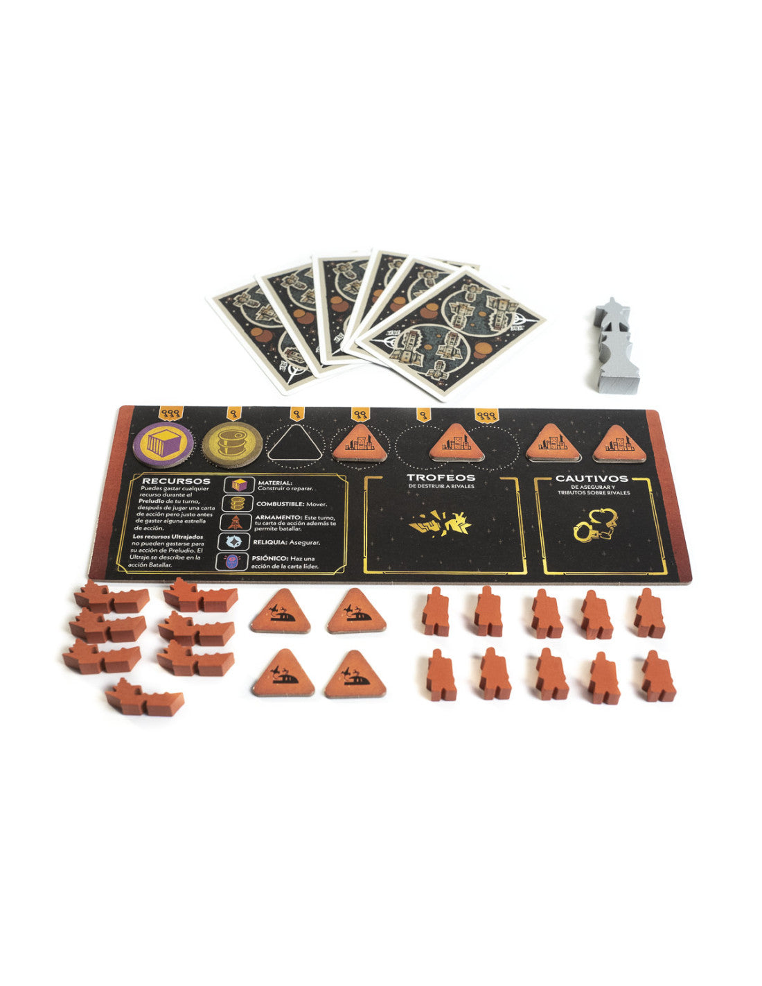 Cada juego contiene un centenar de naves y agentes de madera, 18 dados grabados a medida, un hermoso tablero de seis paneles y toneladas de cartas con más de 60 piezas de arte únicas. El juego base puede jugarse sin las cartas opcionales de líderes y tradición (para una enseñanza más sencilla) o con ellas para un juego más rico, completo y asimétrico. También es el núcleo del juego de campaña (que requiere la expansión Dominio de Arcos), que proporciona una experiencia épica y más temática.
