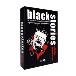 Black Stories edición Superhéroes ofrece 50 nuevos misterios escalofriantes sobre superhéroes y súper fracasos; identidades secretas descubiertas, súper mujeres vengativas, borrachos voladores y mucho más que sólo puede pasar en el universo de los superhéroes- con el típico toque macabro y espeluznante de Black Stories garantizado.