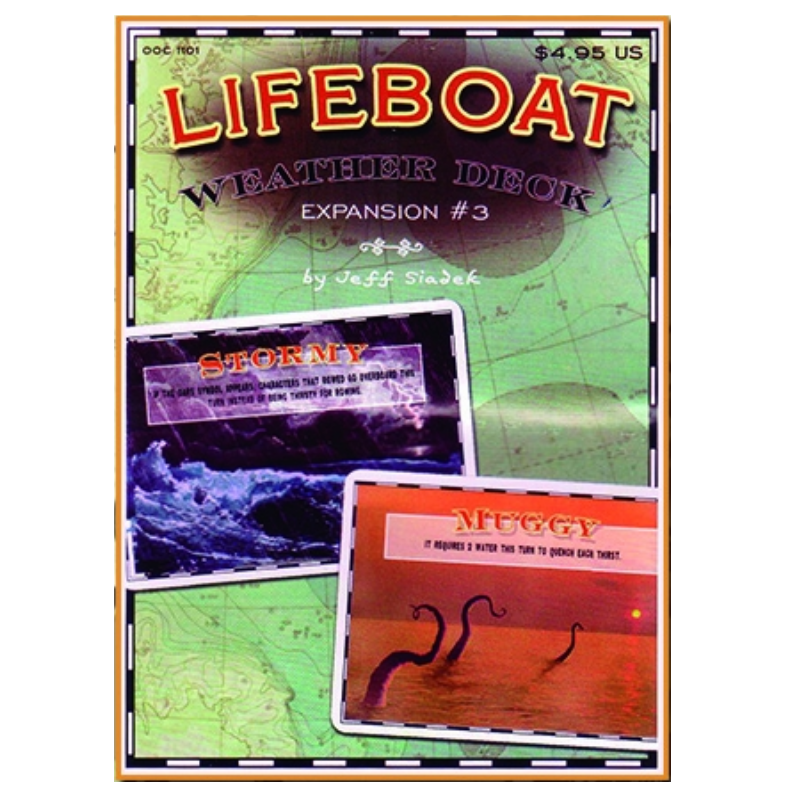 Tercera expansión para el juego de cartas de Bote Salvavidas. El mazo de clima es una expansión de 10 cartas que se barajan por separado y se colocan junto al mazo de provisiones cerca de la proa del bote.