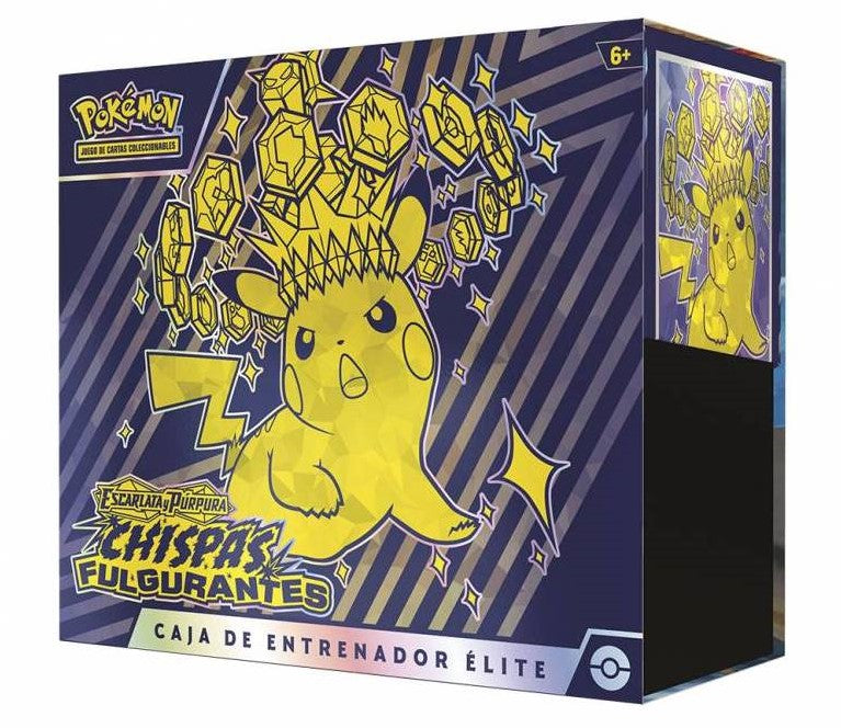 La Caja de Entrenador Élite de Escarlata y Púrpura-Chispas Fulgurantes de JCC Pokémon contiene: