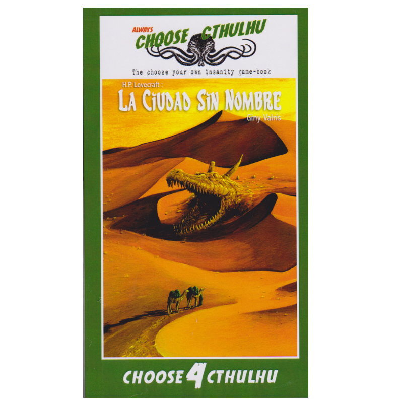 En el librojuego La Ciudad sin Nombre unas ruinas ancestrales de la Península Arábica aguardan a los valientes que osen buscarlas. Su arquitectura, no pensada para cuerpos humanos, esconde tesoros y conocimientos más antiguos que el hombre. ¿Podrás descifrar los ímpios secretos ocultos en los textos de Abdul Alhazred para encontrar la Ciudad sin Nombre? ¿Sobrevivirás a los laberínticos túneles y ciclópeas ruinas? ¿Qué criaturas se arrastran todavía por esos sombríos pasillos largamente olvidados por el resto de los mortales?