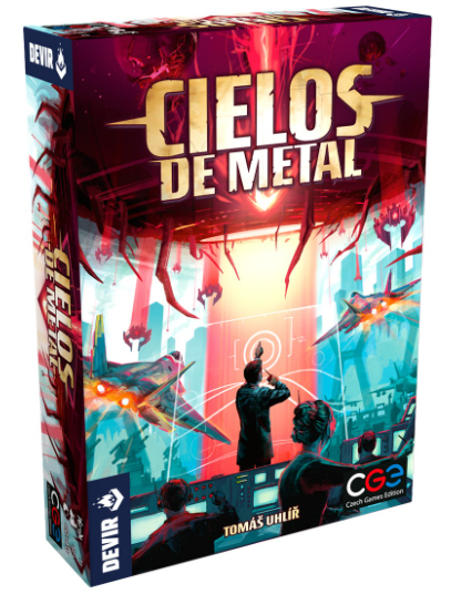 Cielos de Metal es un juego del año 2020, conocido en el mundo anglosajón como Under Falling Skies. Es un juego para un único jugador diseñado por Tomáš Uhlíř (creador de otros juegos como Sanctum o First Snow). En Cielos de Metal nos deberemos hacer cargo de una base subterránea, intentado detener una invasión alienígena.