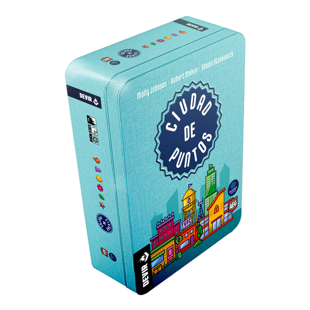 Diseñado y desarrollado por Molly Johnson, Robert Melvin y Shawn Stankewich, este título se puede disfrutar en solitario o en grupos de hasta 4 personas, a partir de 10 años, en partidas de entre 15 y 30 minutos de duración. Ciudad de puntos es un juego de selección de cartas y creación de motor de juego en el que los jugadores consiguen recursos y construyen su ciudad mediante cartas de edificio, compitiendo para conseguir más puntos que los demás. Los edificios construidos ayudan a los jugadores a obtener bonificaciones, puntos y recursos permanentes para los turnos sucesivos. ¡El jugador que construya la ciudad que valga más puntos será el ganador!