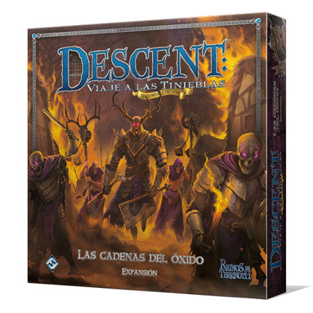 Las cadenas del óxido es una expansión para la segunda edición de Descent: Viaje a las tinieblas. En la emocionante campaña independiente de alto nivel que contiene, los héroes deben afrontar las viles y encantadas Tierras de la Bruma una vez más. Mientras se enfrentan a los corrompidos sirvientes de Waiqar el Inmortal, los héroes tendrán que buscar una cura para su maldito estado a caballo entre la vida y la muerte. Si fracasan, la condena no es la muerte, sino algo mucho peor: una eternidad de no vida.