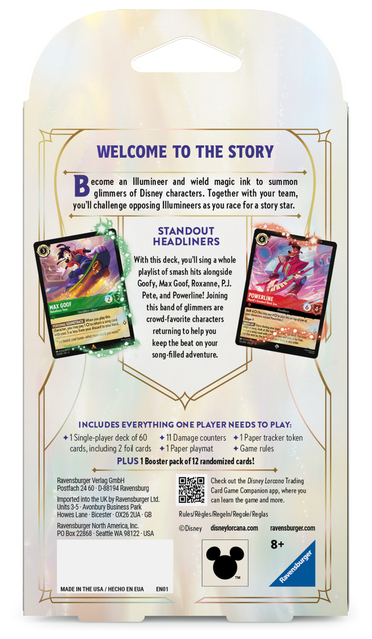 Explora nuevas franquicias como Goofy e Hijo, Gárgolas y Bambi, redescubre personajes clásicos en cartas reeditadas con ilustraciones increíbles, y descubre las cartas más legendarias jamás vistas en Lorcana. ¡Colecciona, combate y escribe tu propia fábula!