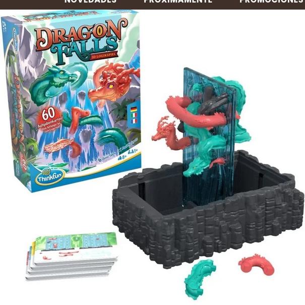 Dragon Falls es un juego de mesa que te presenta 60 intrincados retos. Divertidos puzles que tendrás que resolver utilizando unas espectaculares piezas de Dragon ¿Serás capaz de completarlos?