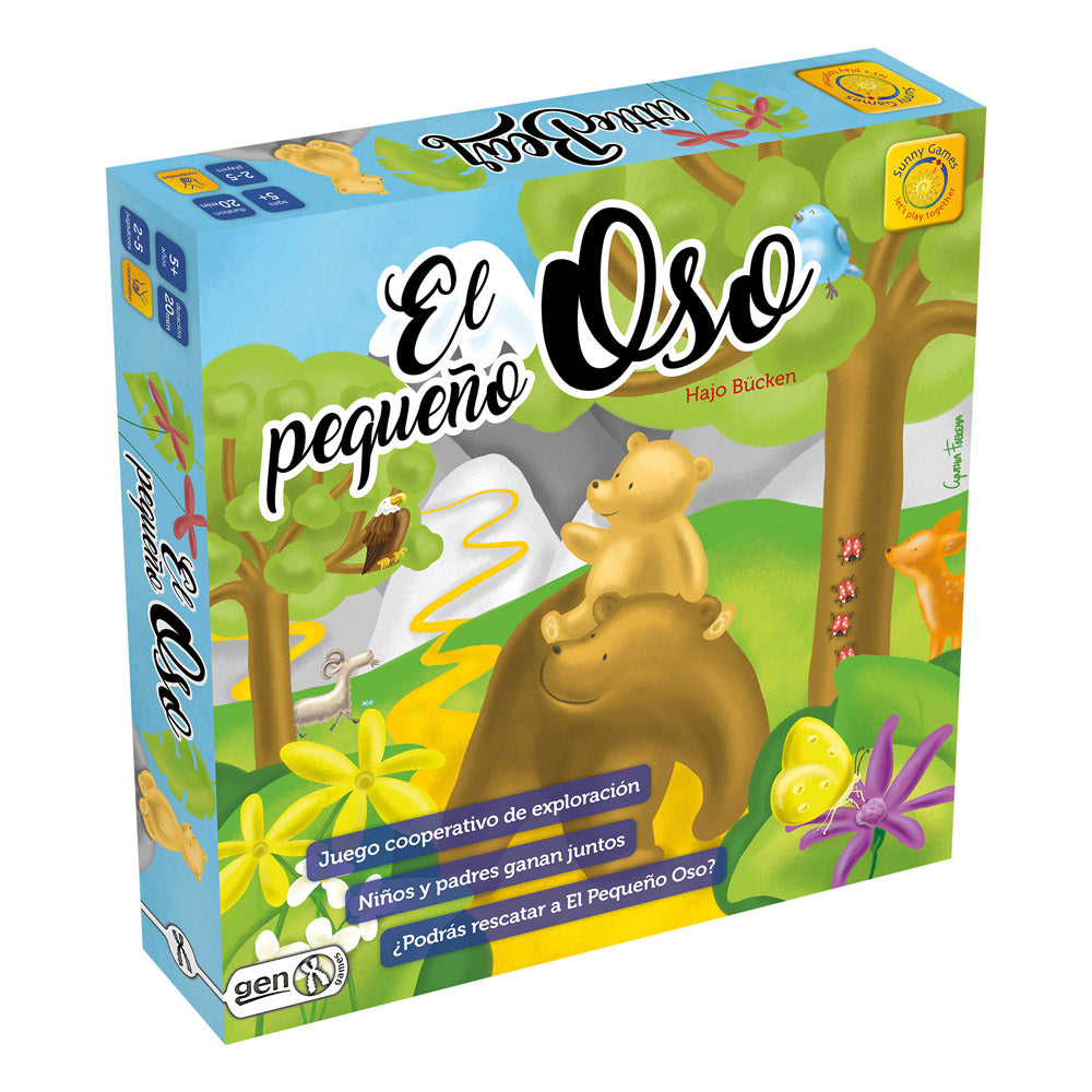 Un juego familiar cooperativo para divertirse con los más pequeños y enseñarles valores mediombientales, en el que mamá osa ha de atravesar bosques y montañas para recuperar a su osezno perdido antes de que oscurezca. Se juega con losetas, es sencillo e ideal para iniciar en los juegos de mesa a los niños y niñas a partir de cinco años, pues tiene una opción fácil y otra más compleja para una edad más avanzada.