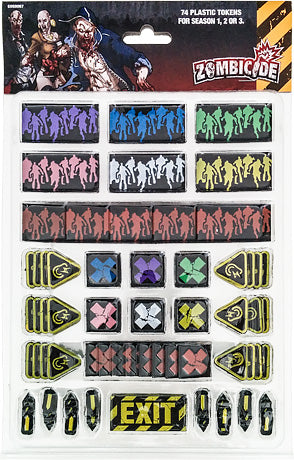 74 fichas y marcadores de plástico para utilizar con Zombicide Temporada 1, 2 o 3.