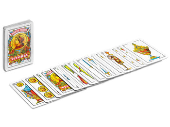 Impreso en nuestro papel laminado estucado de 310 gramos y bañado en nuestro barniz acuoso de alta durabilidad, este naipe se ajusta a los más exigentes requisitos de opacidad, dureza, flexibilidad e impresión. Toda la fabricación se realiza en nuestras instalaciones realizando un control exhaustivo de todo el proceso, lo que garantiza la calidad y consistencia del producto acabado.