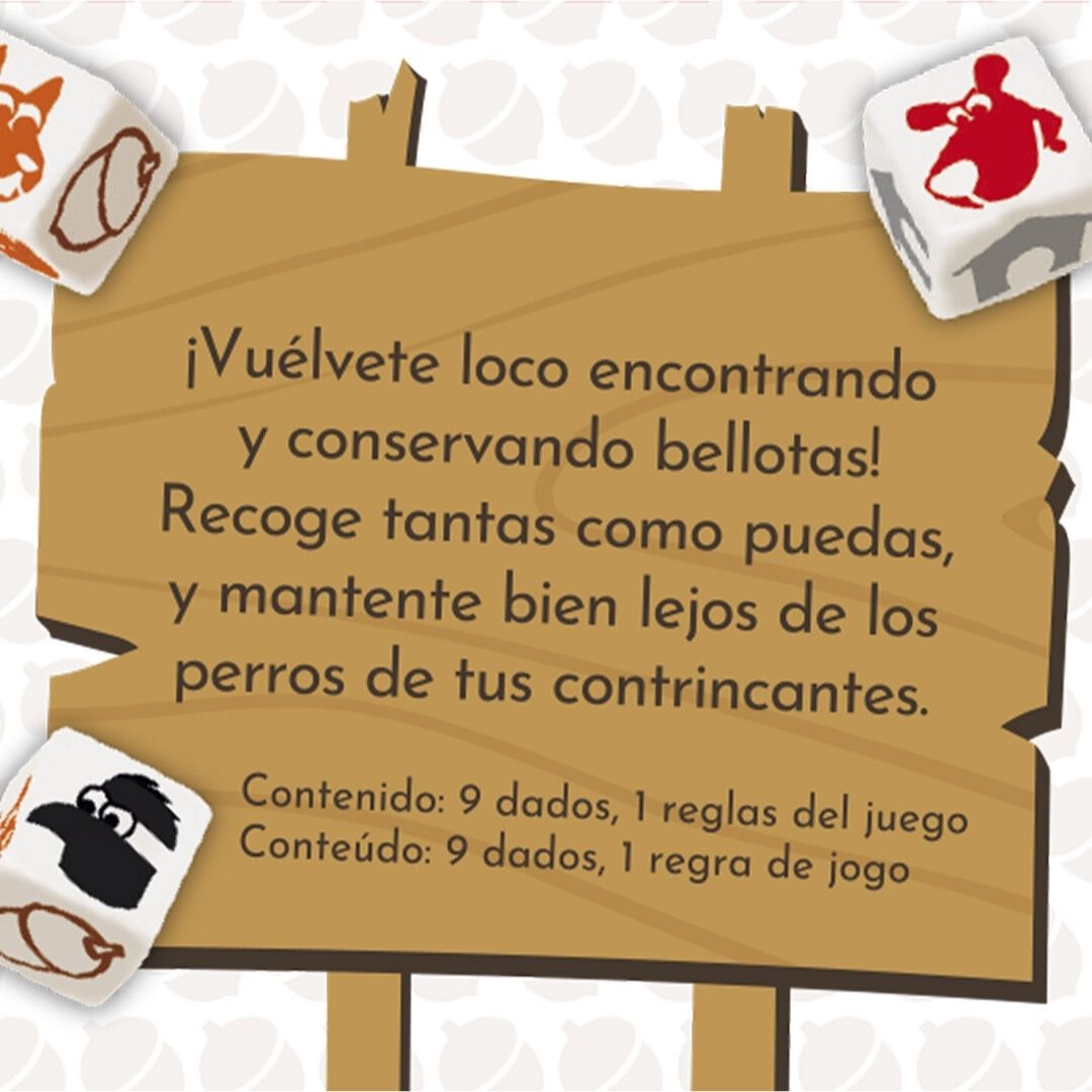Go Nuts es un juego de cados en el que tendréis que acumular puntos de bellota lo más rápido posible. Prepárate a lanzar los dados y a usarlos con suerte y habilidad si quieres hacerte con todas las nueces del bosque, y con la partida. Pero recuerda que la avaricia rompe el saco, de nueces.