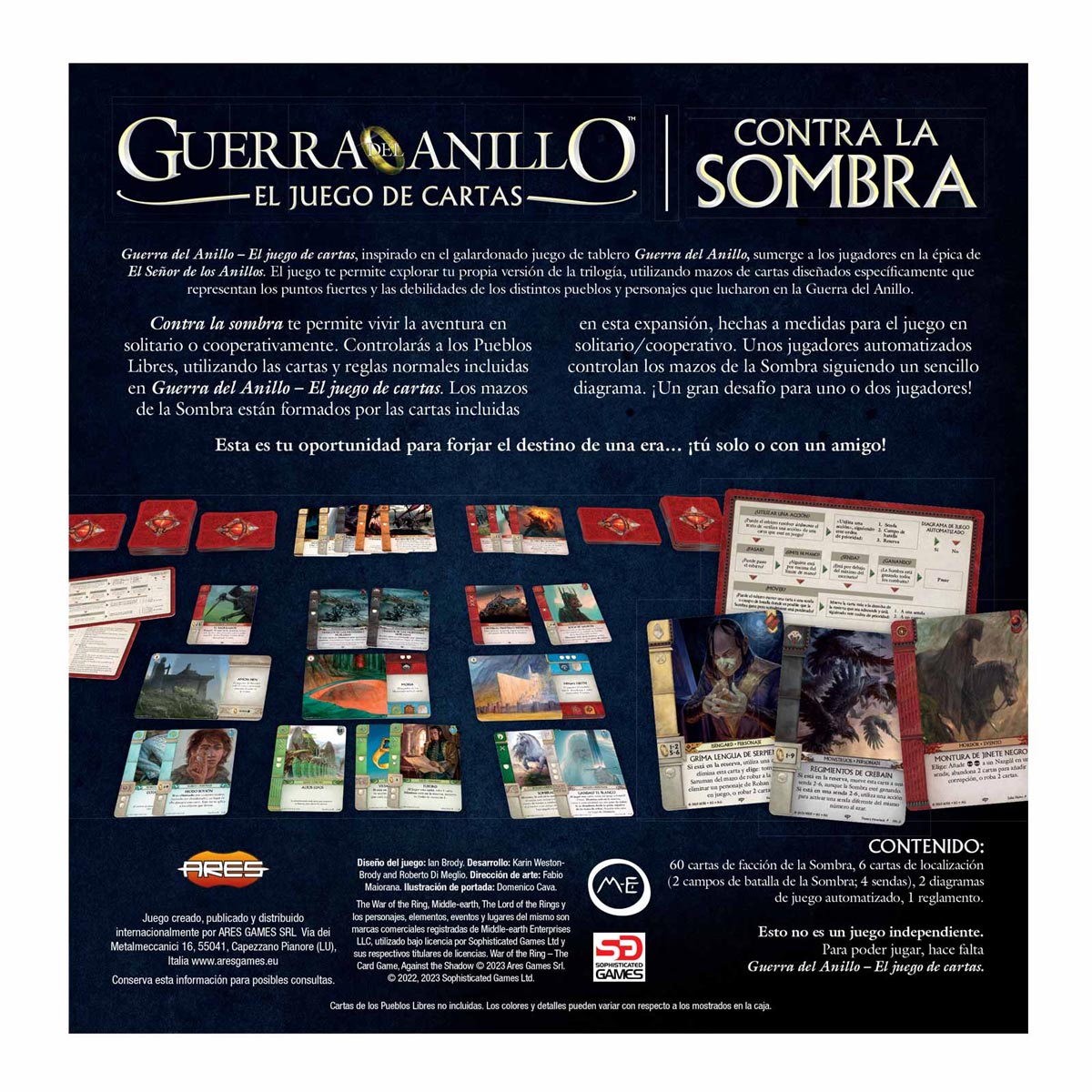 La caja incluye 60 nuevas cartas de facción de la Sombra (Isengard, Monstruos, Hombres del Sur y Mordor), 6 nuevas cartas de localización (4 sendas y 2 campos de batalla) y dos diagramas de juego automatizado. Estos diagramas son los que guían las acciones de la Sombra, para que funcione de forma autónoma como un bot.