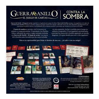 Elfos, hombres y enanos de los Pueblos Libres, ¡alzaos! Las hordas de la Sombra marchan más fuertes que nunca sobre la Tierra Media. En esta expansión de Guerra del anillo. El juego de cartas disfrutarás de toda la emoción del juego básico en solitario o cooperativamente. Los jugadores llevarán a los Pueblos Libres y jugarán del mismo modo que lo hacían en el juego base, pero las barajas de la Sombra se sustituyen por las cartas de esta expansión, que están adaptadas para el juego en solitario o en modo cooperativo.