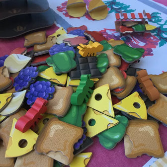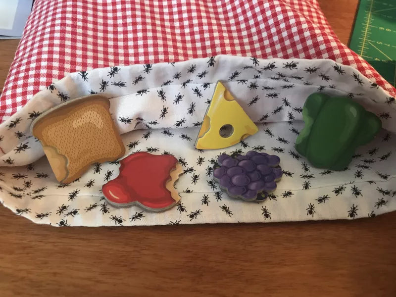 Cinco hormigas se abren paso a través de un picnic lleno de comida. En tu turno, mueve a cualquier hormiga hasta la siguiente comida en el camino que coincida con su color. Después coge la pieza de comida de delante o detrás de la hormiga, guardándola hasta el final de la partida para puntuar.