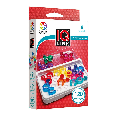 ¡Cuidado! Hay 36 piezas del juego y sólo 24 espacios libres en el tablero. Las anillas y las bolas de piezas distintas pueden ocupar el mismo lugar cuando las enlazas de forma correcta. IQ-Link es un entretenido juego de viaje compacto y el juego de ingenio más enigmático.