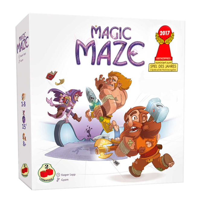 En Magic Maze controlamos a un mago, un guerrero, un elfo y un enano de forma cooperativa para robar artículos mágicos de una tienda con aspecto de laberinto, ya que han sido despojados de sus bienes y los necesitan para su próxima aventura.