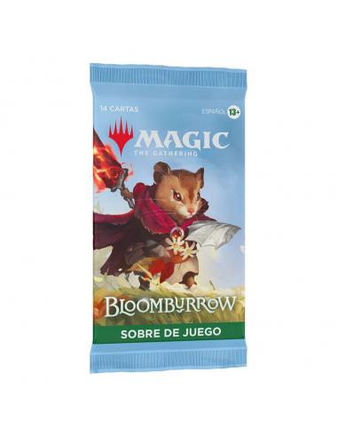 CONTENIDO: 1 sobre de juego de Bloomburrow con 14 cartas de MTG y 1 ficha, carta publicitaria o carta de arte