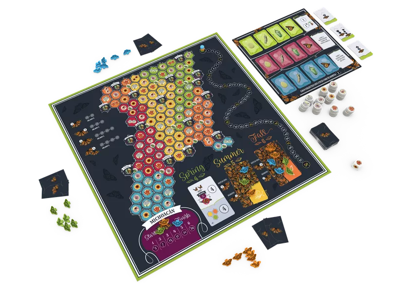 De México a Norteamérica y volver. Año tras año millones de mariposas hacen este viaje homérico, apareándose y sobreviviendo a todo tipo de adversidades. En este evocador juego, ¿serás tú el que consiga terminar el viaje con la mayor familia de mariposas en el tablero?
