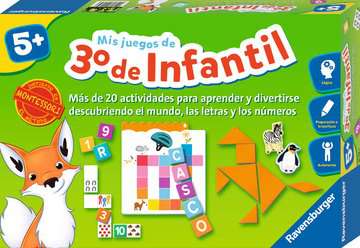 ¡Ravensburger te ofrece estos maravillosos JUEGOS DE APRENDIZAJE, fabricados en Europa, con la máxima garantía de diversión! El juego incluye 10 tarjetas doble faz que proponen más de 20 actividades para el 3° año de jardin de infantes. Con estas actividades el niño aprende los ambientes climaticos, como realizar juegos con cifras, letras y imagenes, conocer los 5 sentidos y mucho más!