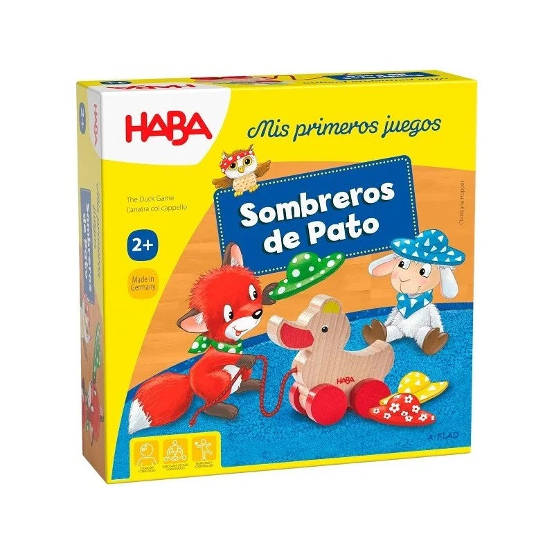 Mis primeros juegos: Sombreros de Pato es un juego de mesa para niños de Haba en donde los jugadores deben lograr en encontrar conjuntamente las fichas de estampado correspondientes a sus tarjeta, recorriendo el circuito de fichas con la ayuda del pato Lu.