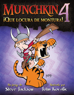 Idioma: Español Jugadores: 3-8 Duración: 45 min. ¡Munchkin a troche y esmoche! Un gran héroe necesita una gran montura para entrar en combate. Y un gran munchkin necesita una montura abusivamente poderosa. En esta ampliación, te damos lo que te mereces. Galopa por el Dungeon montado en tu Tigre, Dragón, Gerbo Gigante Mutante, Águila ¡o incluso en una Gallina!, cada uno con ese particular poder absolutamente irracional que puedes esperar de `Munchkin`. En ¡Qué Locura de Montura! encontrarás 112 nuevas cartas para `Munchkin`, el archifamoso juego de puñaladas traperas, saqueos y caos en estado puro. En esta ampliación encontrarás también un montón de Escuderos, que podrás añadir a tu séquito para que uses sus habilidades especiales, y que se sacrificarán para que salves tu miserable pellejo. O mejor aún, mata al Escudero de otro `Munchkin`. ¡Así es como actúa un verdadero `Munchkin`! Nota: Requiere Munchkin juego básico para poder jugar. Página del juego en BGG