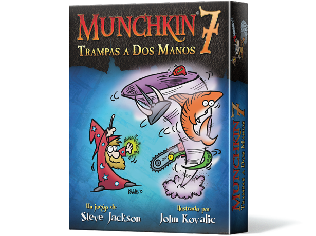 Idioma: Español Jugadores: 2-6 Duración: 45 min. Admítelo. Cuando nadie te ve, te gusta mezclar todas tus colecciones de Munchkin… porque mientras más absurdas son las combinaciones, más te ríes. Pues bien, ¡ha llegado tu hora y la de Star Munchkin Súper Cthulhu Zombies! Munchkin 7: Trampas a Dos Manos ha sido creado para las partidas en las que todo vale y ningún combo resulta demasiado extraño. ¿Por qué conformarte con ser un Súper Munchkin cuando puedes ser un Ultra Munchkin? Y por si los Bastardos no eran su ciente, también traemos Superbastardos. Y si las cartas de ¡Eso Es Trampa! se te habían quedado pequeñas, ahora te decimos: Haz Trampas como Si no Hubiese un Mañana. Hay montones de Mejoras de objetos y monstruo, y un nuevo tipo de carta, ¡la Mejora de Mejoras! Además también podrás encontrar un puñado de monstruos de bajo Nivel para ayudarte a conseguir víctimas fáciles… hasta que alguien coja la Marioneta de Calcetín y la convierta en una Marioneta de Calcetín Sigilosa y Sorprendentemente Ultra Rara con Extra de Queso. Esta expansión es extraña. Sus cartas son desproporcionadamente poderosas. La quieres. Esta caja es una expansión de Munchkin. Necesitarás la caja básica para poder jugar. Página del juego en BGG