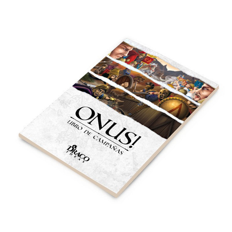 Libro de 112 páginas con 40 escenarios para el juego ONUS! Repartidos a 6 campañas: La Campaña de Hispania (Segunda Guerra Púnica), Guerras Médicas, Guerras Griegas, El Auge de Macedonia, Guerras Macedónicas y la Guerra de los Gladiadores.