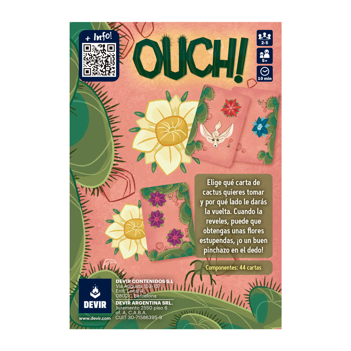 Ouch! Es un juego de cartas creado por Romain Caterdjian y Théo Rivière e ilustrado por Fran Collado. Recomendado a partir de cinco años, pueden participar de 2 a 5 jugadores en partidas de unos diez minutos de duración. Los jugadores competirán por obtener el mayor número y más variado de flores de cactus, evitando los afilados pinchos.
