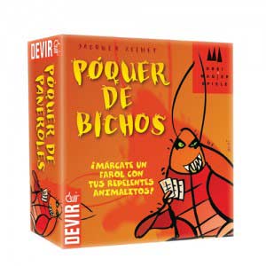 Idioma: Español Jugadores: 2-6 Duración: 20 min. Póquer de bichos Real no tiene nada que ver con el póquer tradicional, excepto que para ganar necesitas ser el mejor faroleando y no dejándote engañar por los demás. En cada turno, un jugador intenta pasar una carta boca abajo a otro jugador diciéndole de qué tipo de carta se trata. Este jugador puede creer o no la propuesta. Si acierta en creer o no la afirmación de su rival, este se queda la carta, si falla, se la queda él. El juego termina cuando un jugador se queda sin cartas (y es el ganador) o cuando un jugador tiene cuatro cartas iguales frente a él. En este caso, este jugador pierde y los demás ganan. Página del juego en BGG