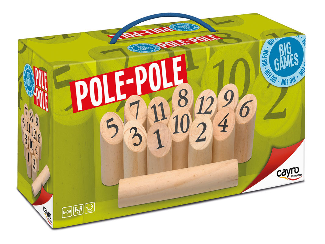 Pole Pole es un juego de gran formato de origen sueco de competición, muy popular en escandinavia, viene con los palos numerados y unas reglas más sencillas.