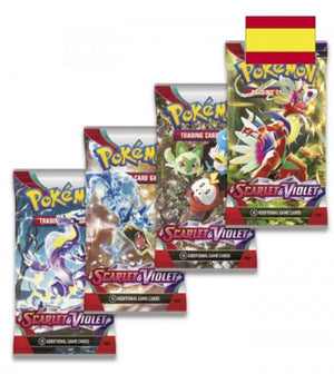 Conoce a los primeros socios Sprigatito, Fuecoco y Quaxly y explora el poder de los Pokémon legendarios Koraidon y Miraidon como Pokémon ex. Otros Pokémon ex evolucionan en su camino a la batalla, incluidos Arcanine y Gyarados con una nueva apariencia deslumbrante. Aparecen incluso más Pokémon como cartas raras de ilustración con ilustraciones increíbles.