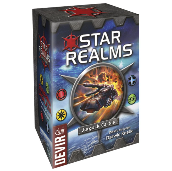 Forja tu propio reino estelar. ¡Construye tu armada por medio del comercio estelar, para luego emplear tus poderosas flotas y naves espaciales para proteger lo tuyo y apoderarte de lo que no lo es! Star Realms combina la diversión de los juegos de construcción de mazos con la interactividad de los juegos de combate con cartas coleccionables. A medida que juegas, usarás el comercio para sumar nuevas naves y bases a tu mazo. Una vez puestas en juego, esas naves y bases generan poderosos efectos, comercio adicional y fuerza de combate con la que atacar al contrario y sus bases.