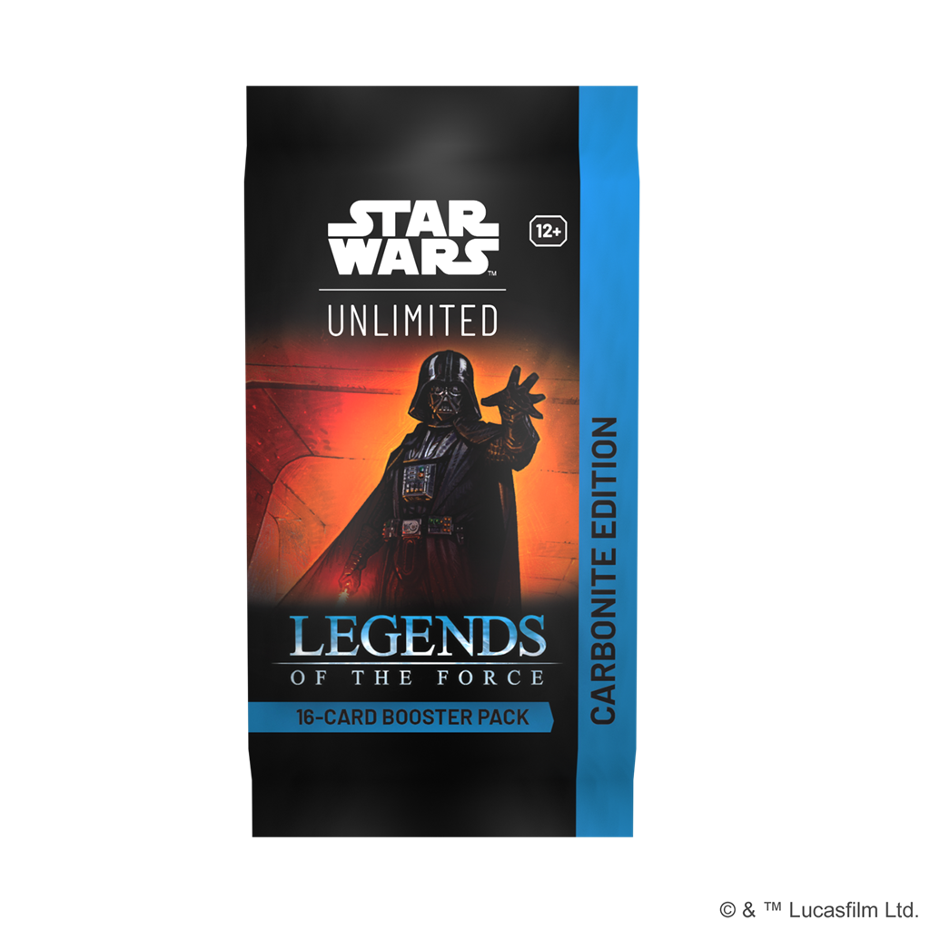 These special premium packs are loaded with variant cards with special aesthetic treatments, making them the perfect packs for collectors. In this Carbonite booster pack for the game’s fifth set, Legends of the Force, you’ll find 16 cards to add to your collection, including approximately: 1 Hyperspace/Showcase leader card, 6 premium foil cards, 1 foil rare or legendary card, 1 Carbonite-exclusive Prestige card, 4 Hyperspace cards, 1 Hyperspace rare or legendary card, and 2 Hyperspace foil cards.