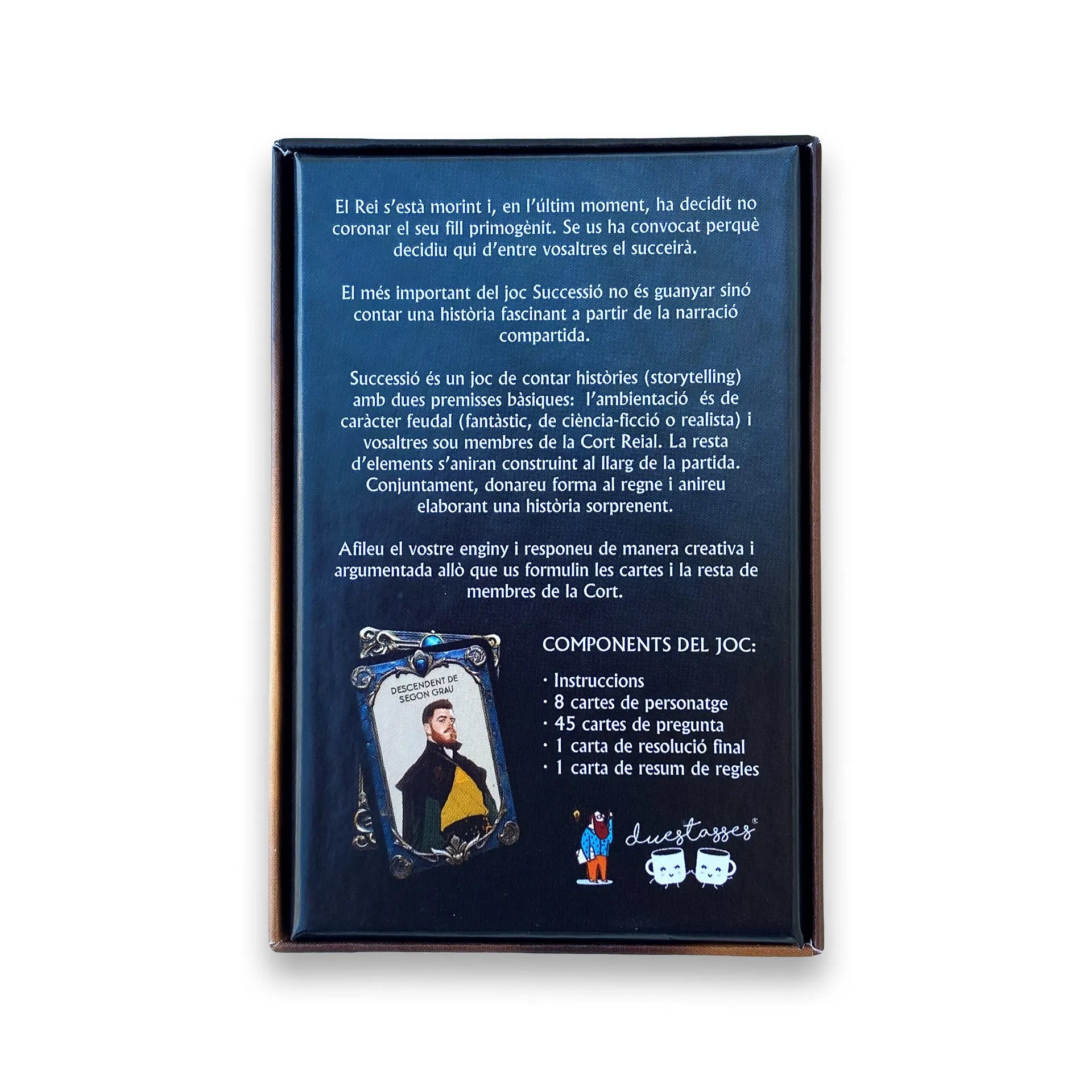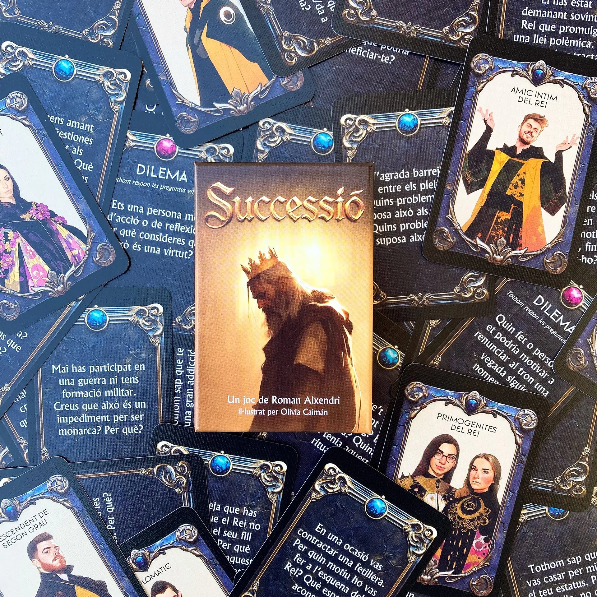 Successió es un juego narrativo conformado por 55 cartas, escrito y diseñado por Roman Aixendri donde los jugadores representarán el papel de miembros de un Consejo Real.