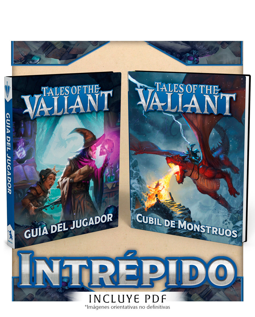 El universo de Tales of the Valiant está contenido en dos libros esenciales: La Guía del Jugador y El Cubil de Monstruos. En la Guía del Jugador, encontrarás todo lo necesario para crear héroes legendarios y llevar las riendas de épicas aventuras. Mientras tanto, el Cubil de Monstruos te ofrece una amplia colección de criaturas de alta fantasía, desde los icónicos orcos y dragones rojos hasta enemigos únicos del universo ToV, como los temibles cuervos estelares , los misteriosos demonios cascáreos y los poderosos mecadrones.