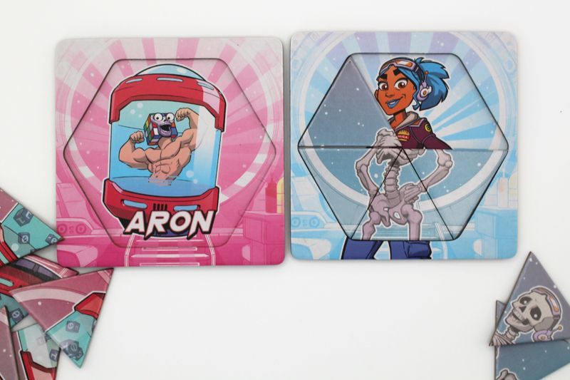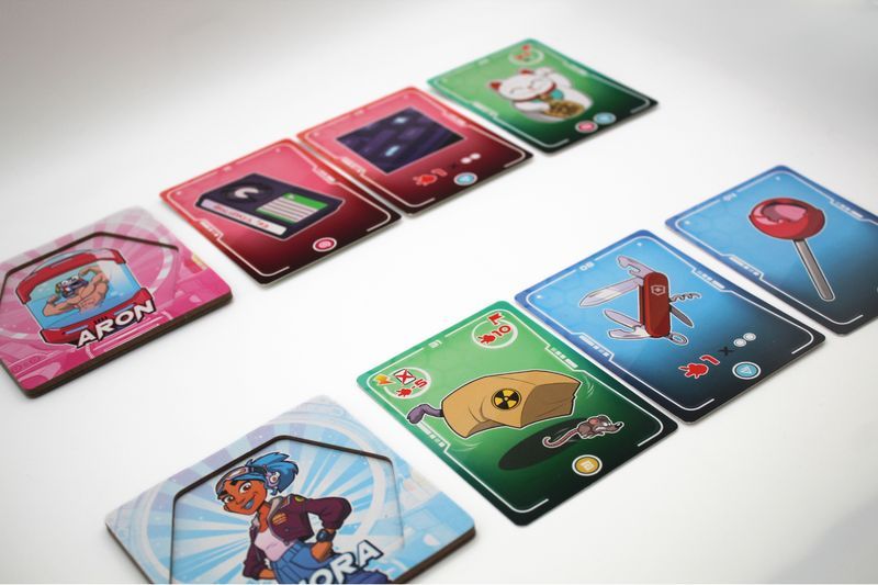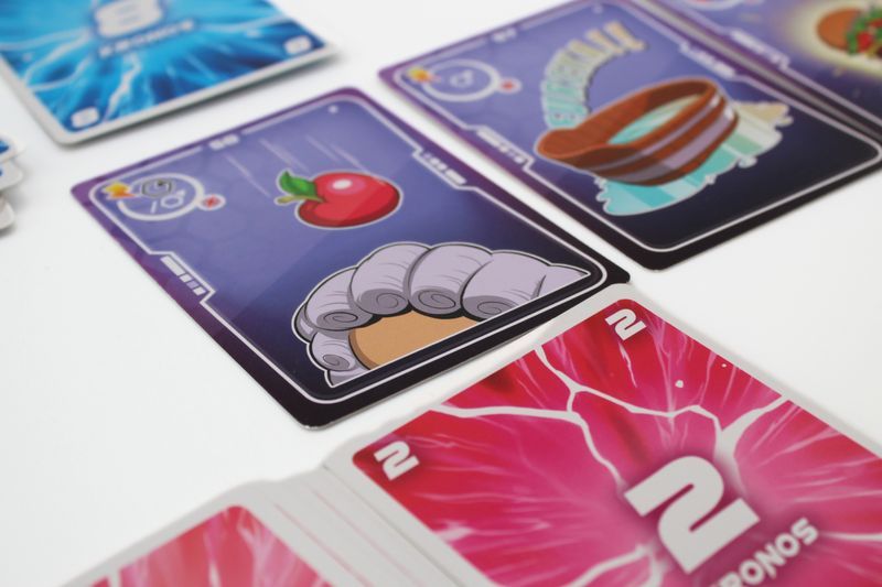 - 22 Cartas de Kronos de diferentes valores (11 fucsia para Aron y 11 azules para Nora)