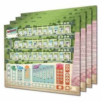 Un set de 4 laminas reutilizables de borrado en seco con la hoja original del juego Welcome: Hacia el perfecto Hogar.