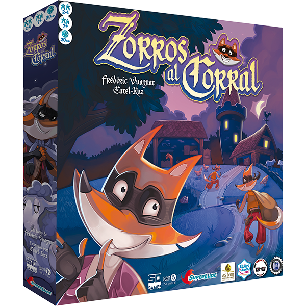 Contenido: 4 máscaras de Zorro, 8 cartas de Misión, 24 piezas de Botín, 5 piezas de Treta, 30 fichas de Huevos, 1 reglas en castellano y 1 reglas en catalán